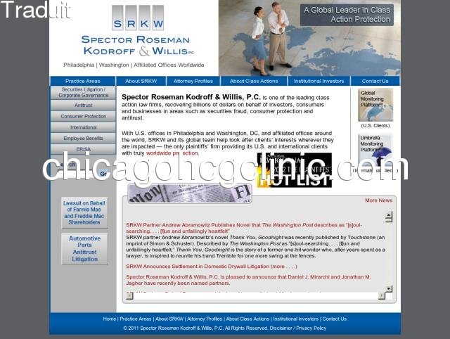 Spector Roseman Kodroff & Willis, C. P. d'Avocats des recours collectifs Avocats - Spector Roseman Kodroff & Willis est l'un des leaders de la classe action de droit des entreprises, la protection des investisseurs institutionnels, des consommateurs et des entreprises dans les domaines de la fraude en valeurs mobilières, la protection des consommateurs et de l'antitrust.